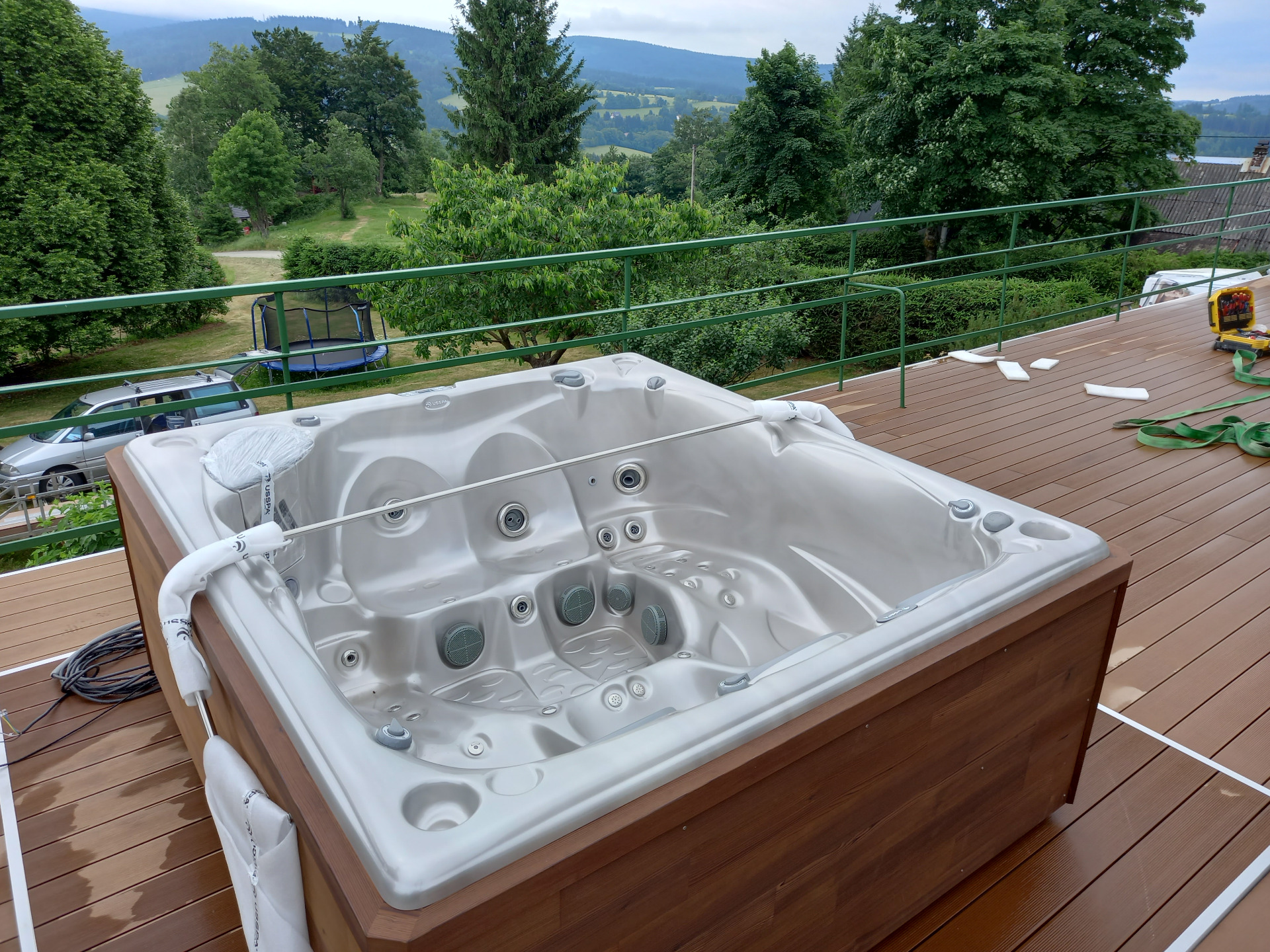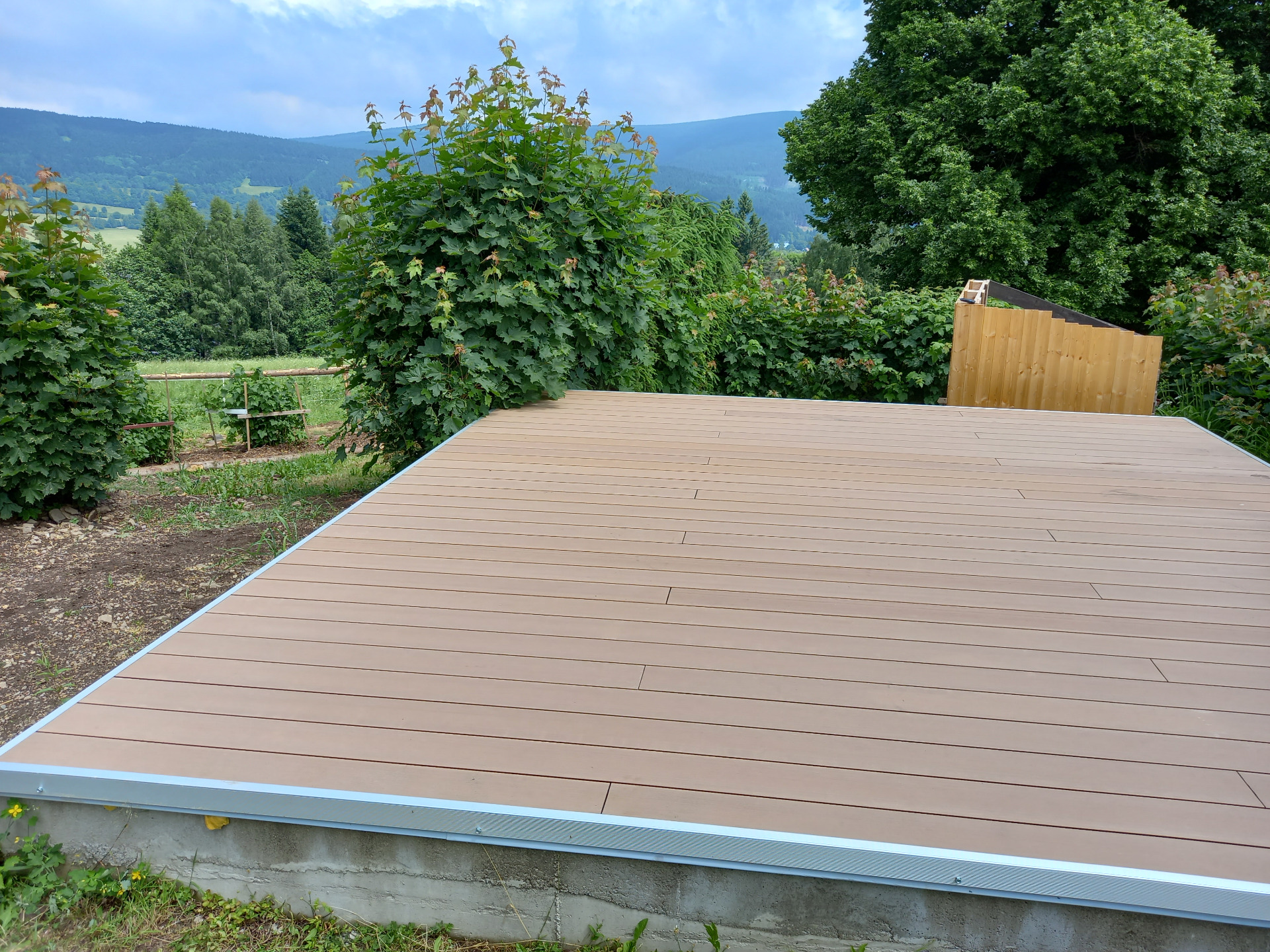 Zahradní terasy, terasy kolem bazénů, mola, balkony, vyvýšené terasy, terasy ve svahu, schody atd.